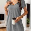 Женские однотонные повседневные универсальные модные футболки с V-образным вырезом и карманами — купить товар онлайн с бесплатной доставкой по всему миру!