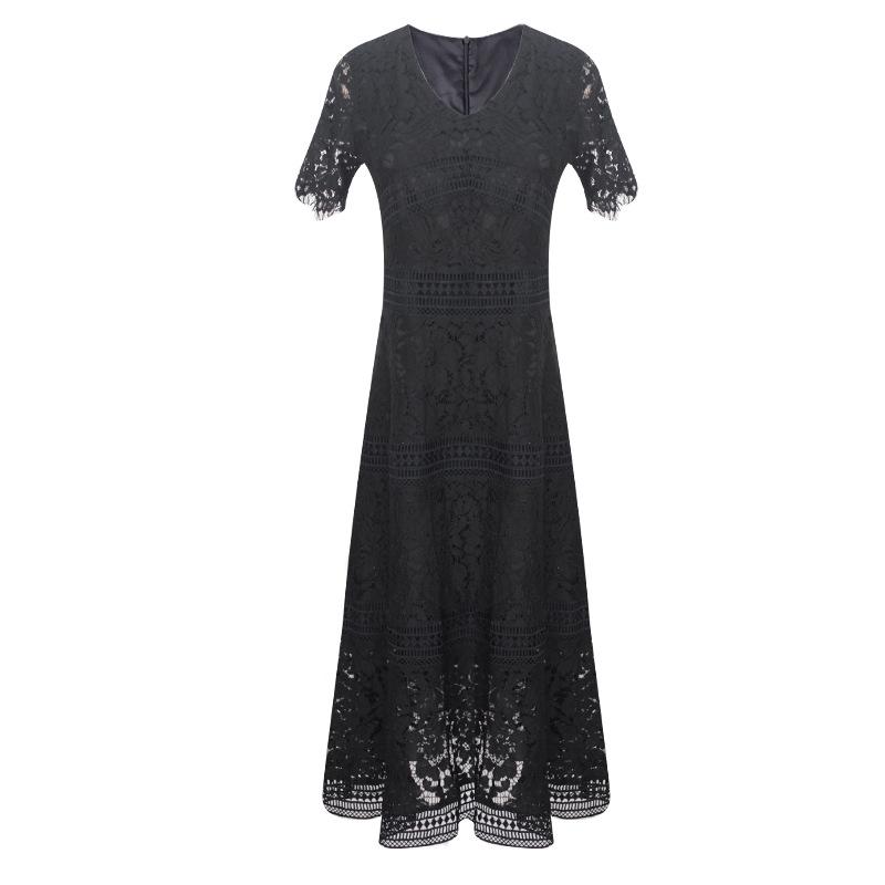 Платье А-силуэта с V-образным вырезом и кружевом, европейский стиль, летняя мода, размер плюс, юбка средней длины, подходит для веса до 200 фунтов — купить товар онлайн с бесплатной доставкой по всему миру!