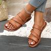 2025 Новые женские однотонные сандалии из искусственной кожи на плоской подошве, повседневная летняя обувь с открытым носком, легкие сандалии с ремешком на щиколотке
