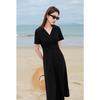 Летнее платье больших размеров: Стройнящее черное платье 3006 - Лестный дизайн, скрывающий живот, для женщин