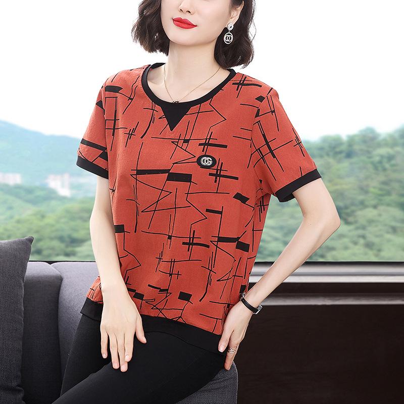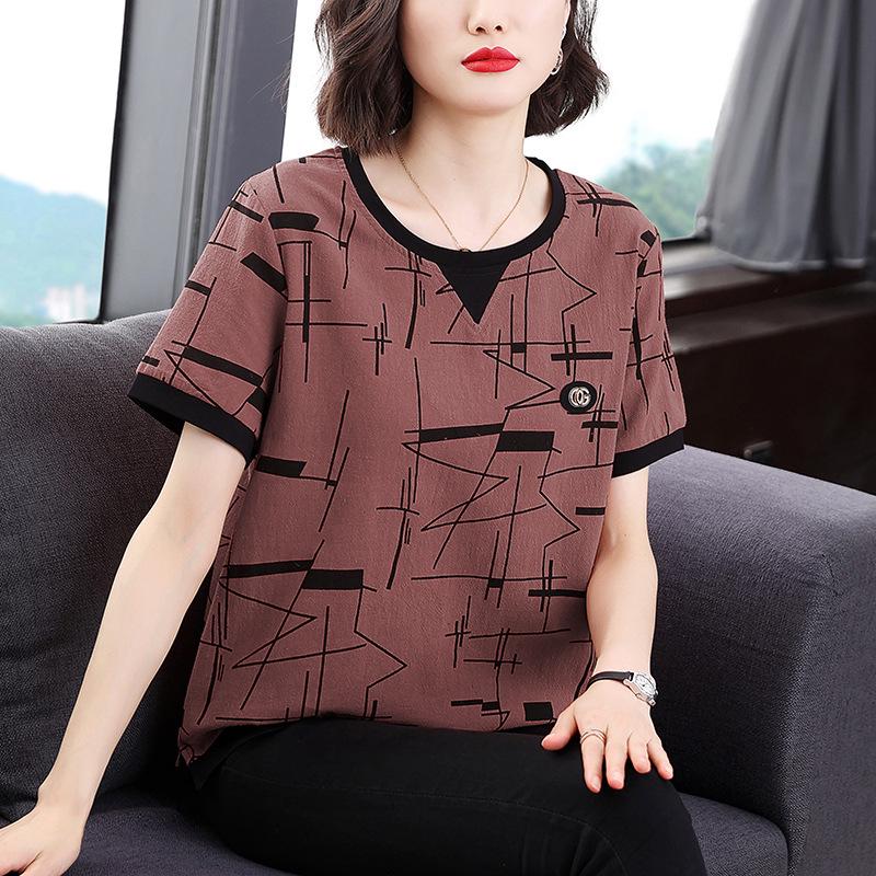 Женская футболка свободного кроя в корейском стиле 2023 года — закрывающая живот, с короткими рукавами, большого размера для женщин среднего возраста