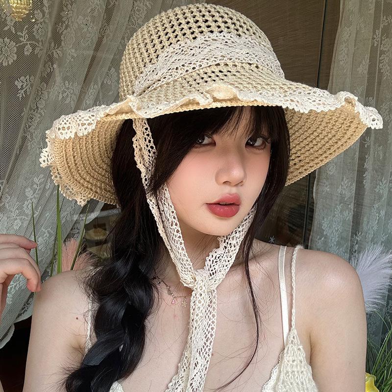 Шляпа из дышащего кружева из травы для женщин, летняя, для путешествий на открытом воздухе, универсальная, пляжная, солнцезащитная, солнцезащитная шляпа