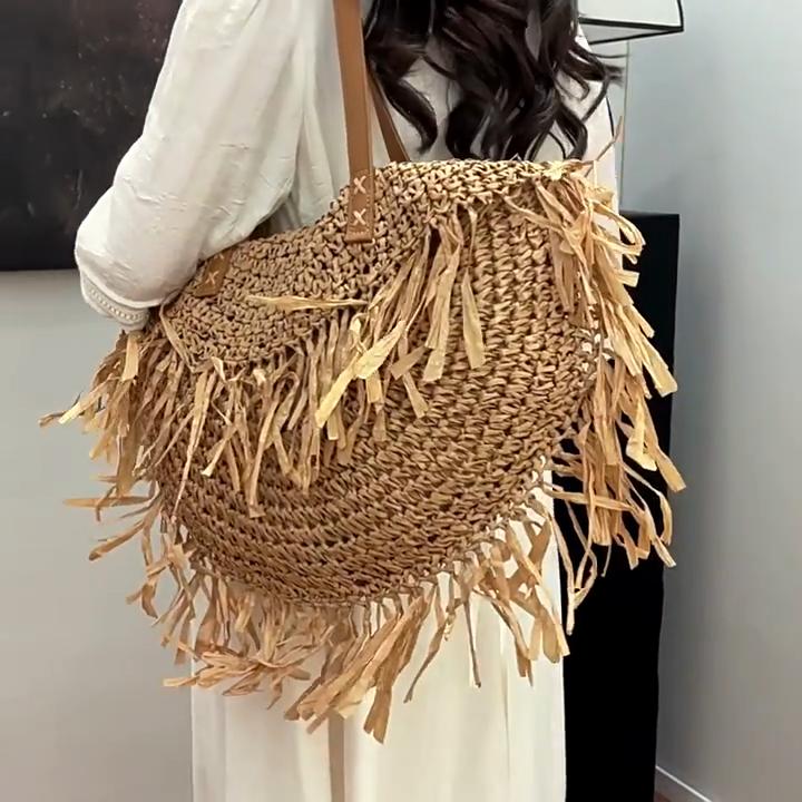 Женская стильная вязаная сумка через плечо с кисточкой, ажурная плетеная сумка, износостойкая пляжная сумка ручной работы, сумки-шопперы — купить товар онлайн с бесплатной доставкой по всему миру!