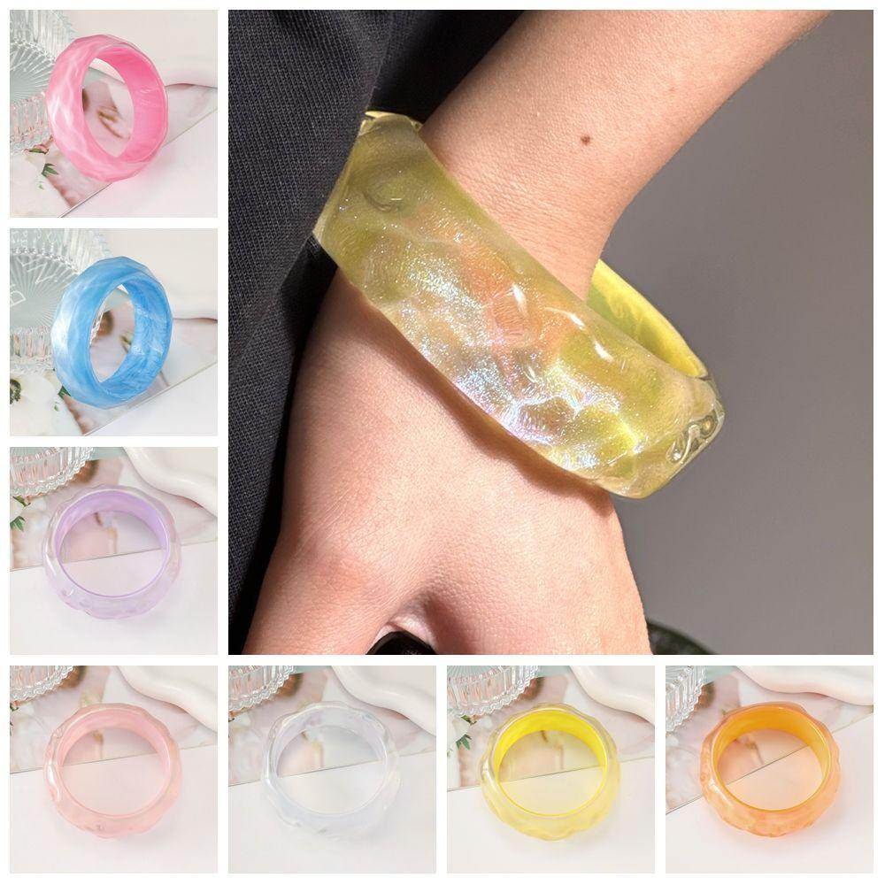 Bohemian Glitter Acrylic Bangle Round Retro Hand Ring Exaggerated Jelly Color Wide Bracelet Gift