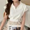 Женский тонкий трикотажный свитер-поло с короткими рукавами - лето 2022 г. в корейском стиле