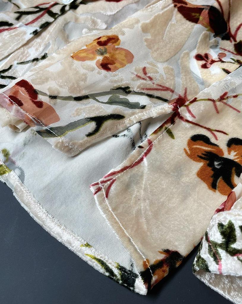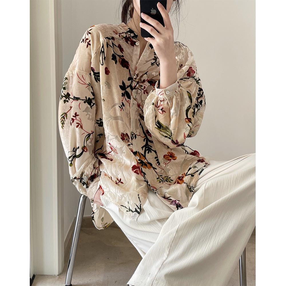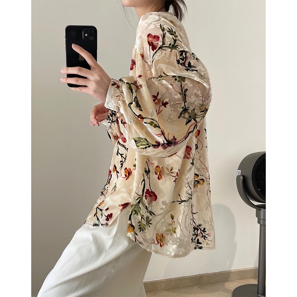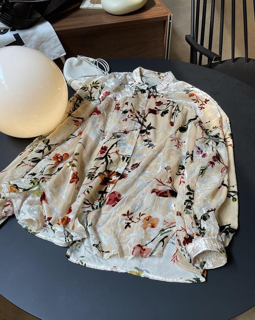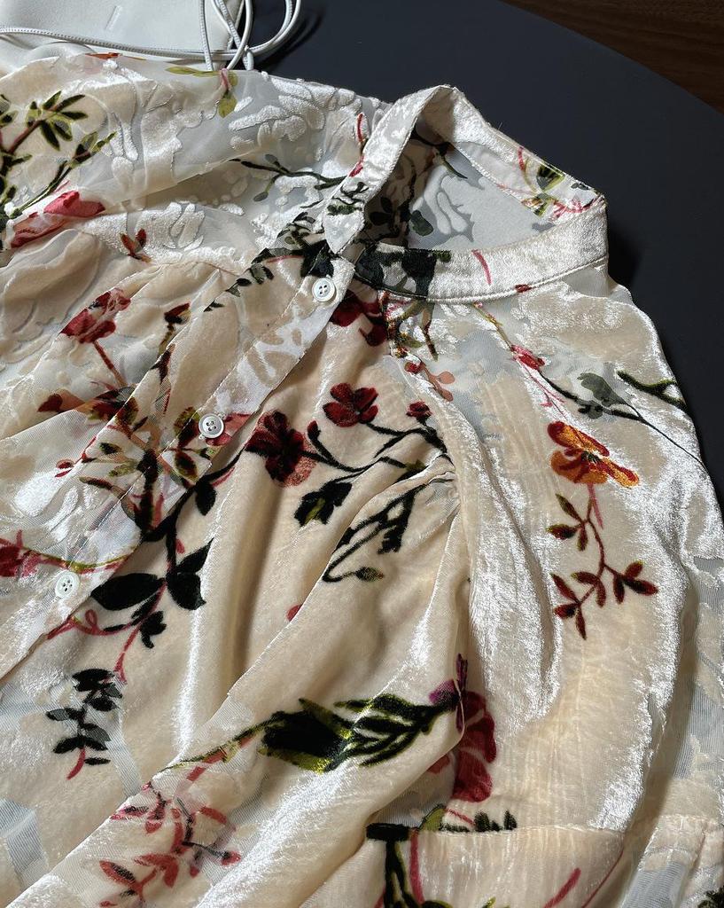 Louvre Летний ретро бархатный драпированный топ с принтом - корейский дворцовый стиль, свободный облегающий крой для женщин