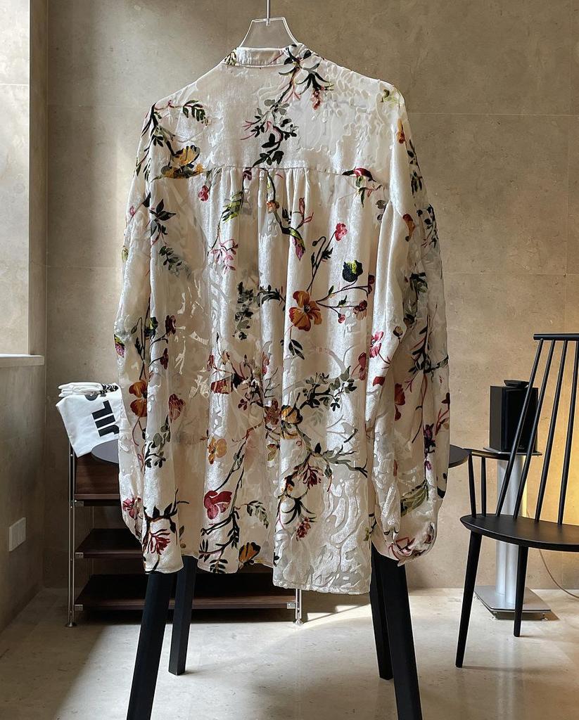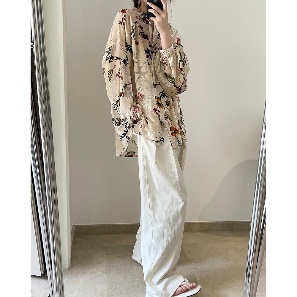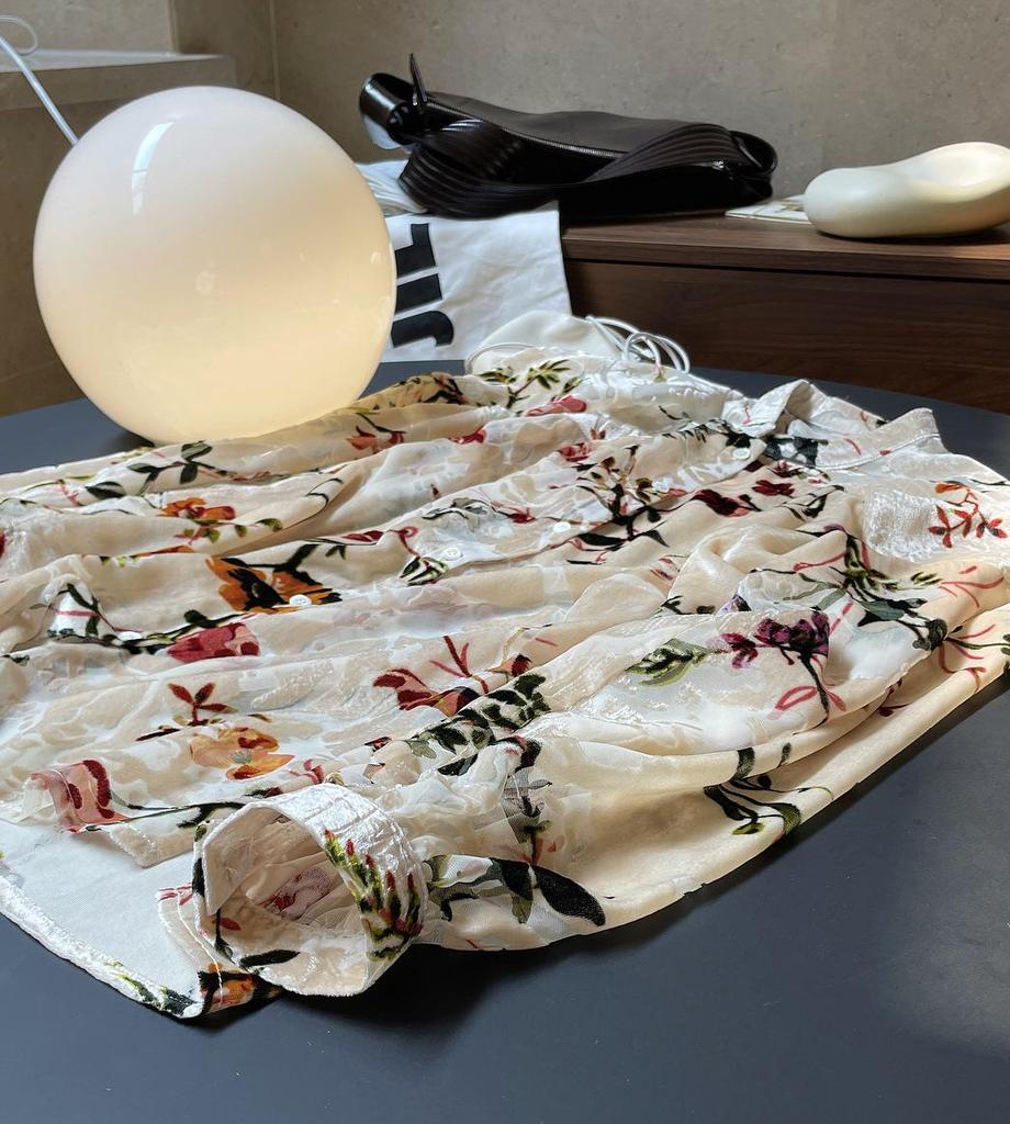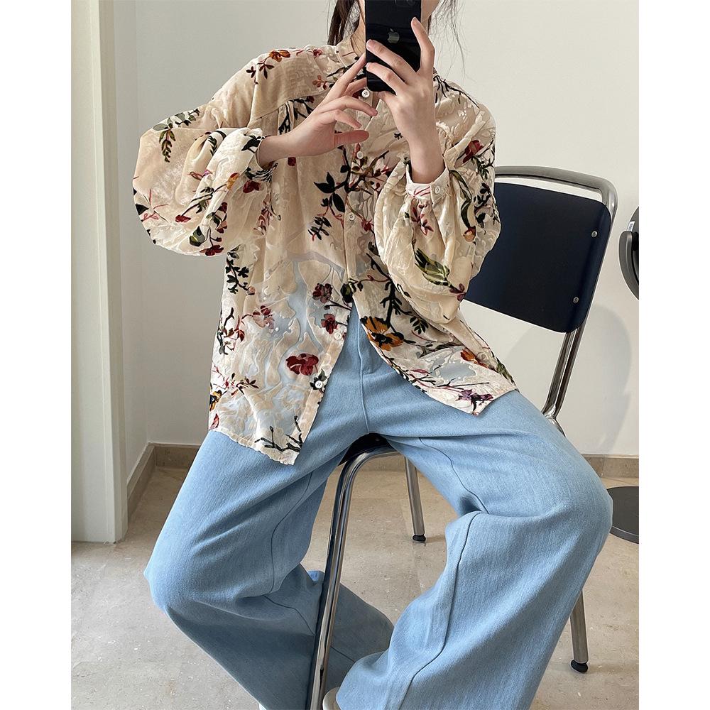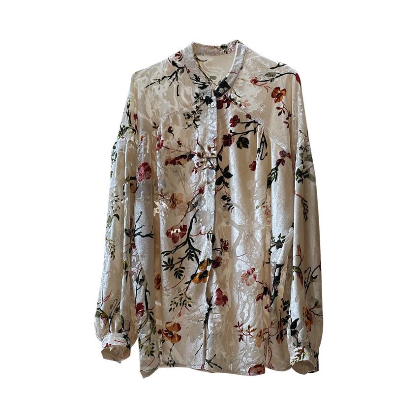 Louvre Летний ретро бархатный драпированный топ с принтом - корейский дворцовый стиль, свободный облегающий крой для женщин