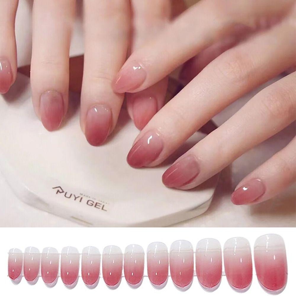 Ногти в стиле французский маникюр с полным покрытием, куспид, круглые, накладные ногти, модные пресс-он ногти, для женщин