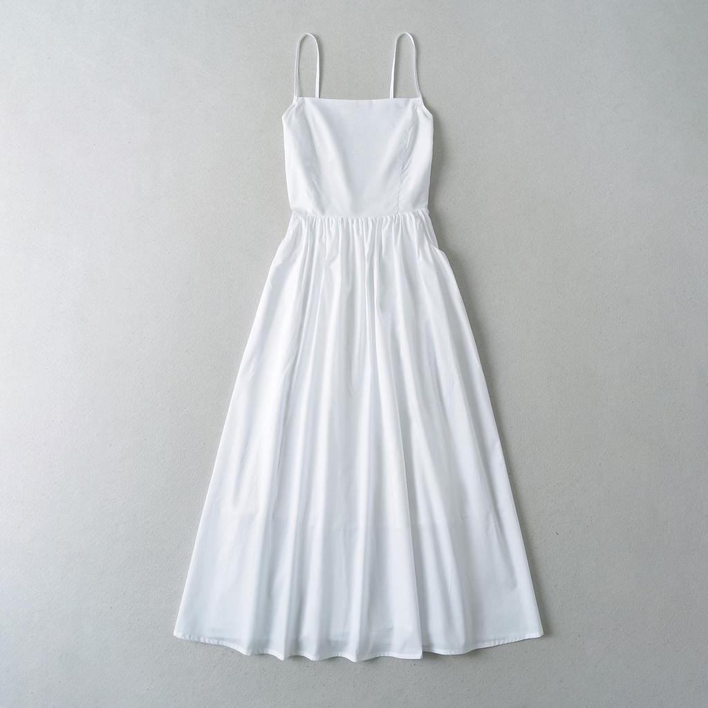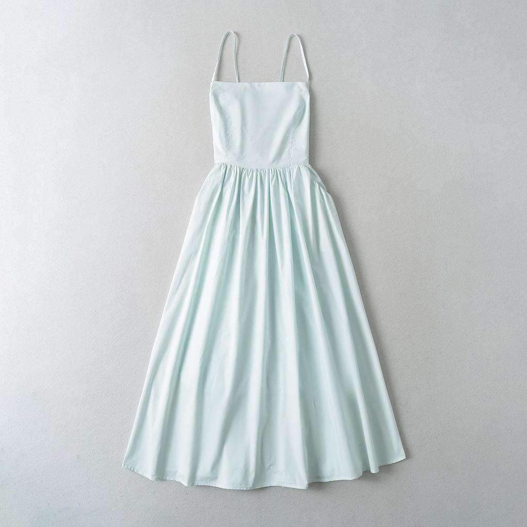 Женское платье макси с открытой спиной и бретельками во французском стиле 2024 года