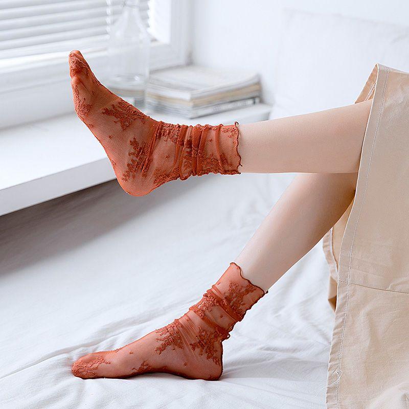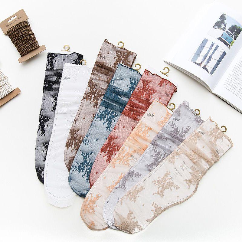 Кружевные чулки женские, средние, сетчатые, ажурные, кружевные, чулки, летние, тонкие, прозрачные