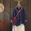 Женская свободная рубашка-пуловер из хлопка и льна с вышивкой в китайском стиле и шнуровкой – Верх платья для чайной вечеринки весна/лето — купить товар онлайн с бесплатной доставкой по всему миру!
