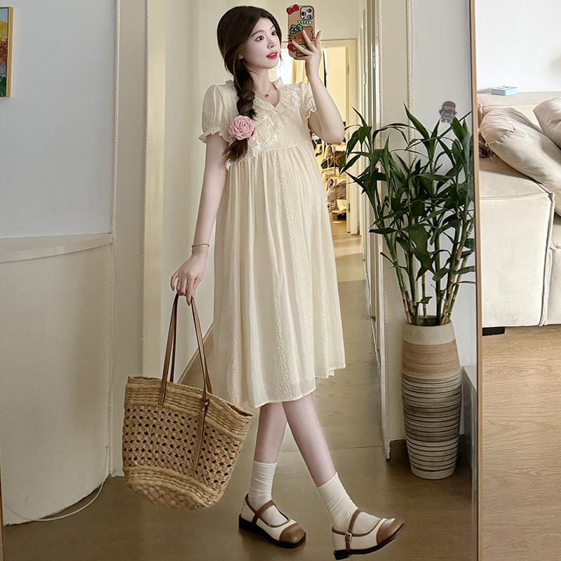 Милое летнее платье для беременных из жаккардового кружева с V-образным вырезом и вышивкой — купить товар онлайн с бесплатной доставкой по всему миру!