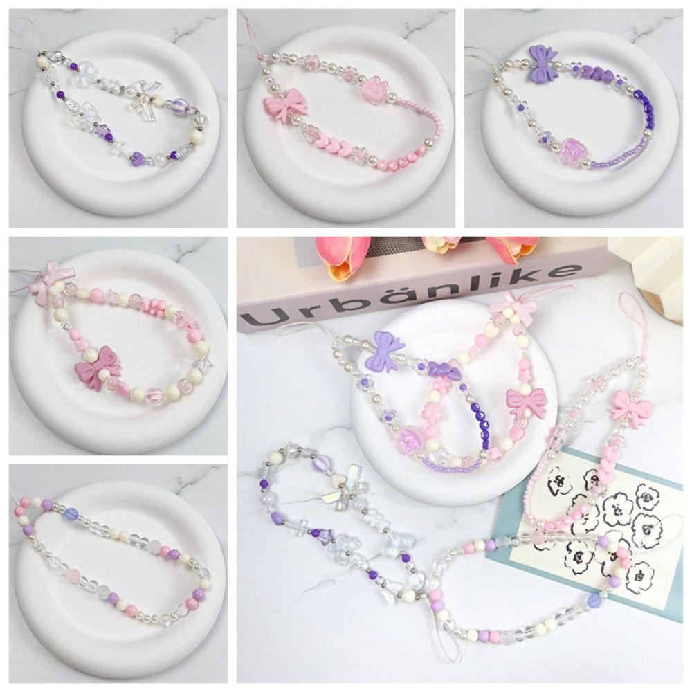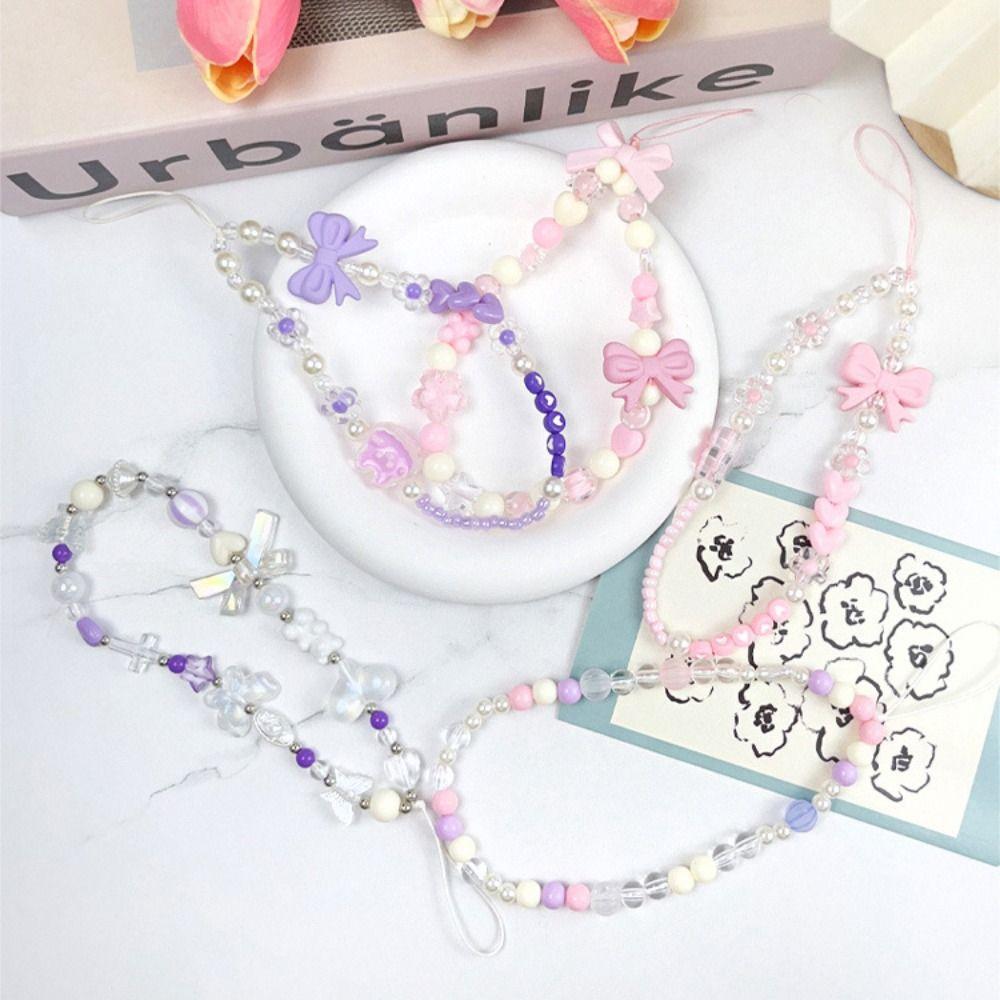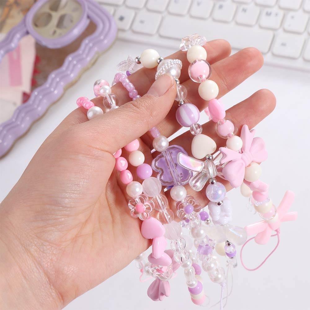 Пластиковый розовый бисер Love Bow Подвеска бисерный бант Y2K телефон шнурок чехол для телефона