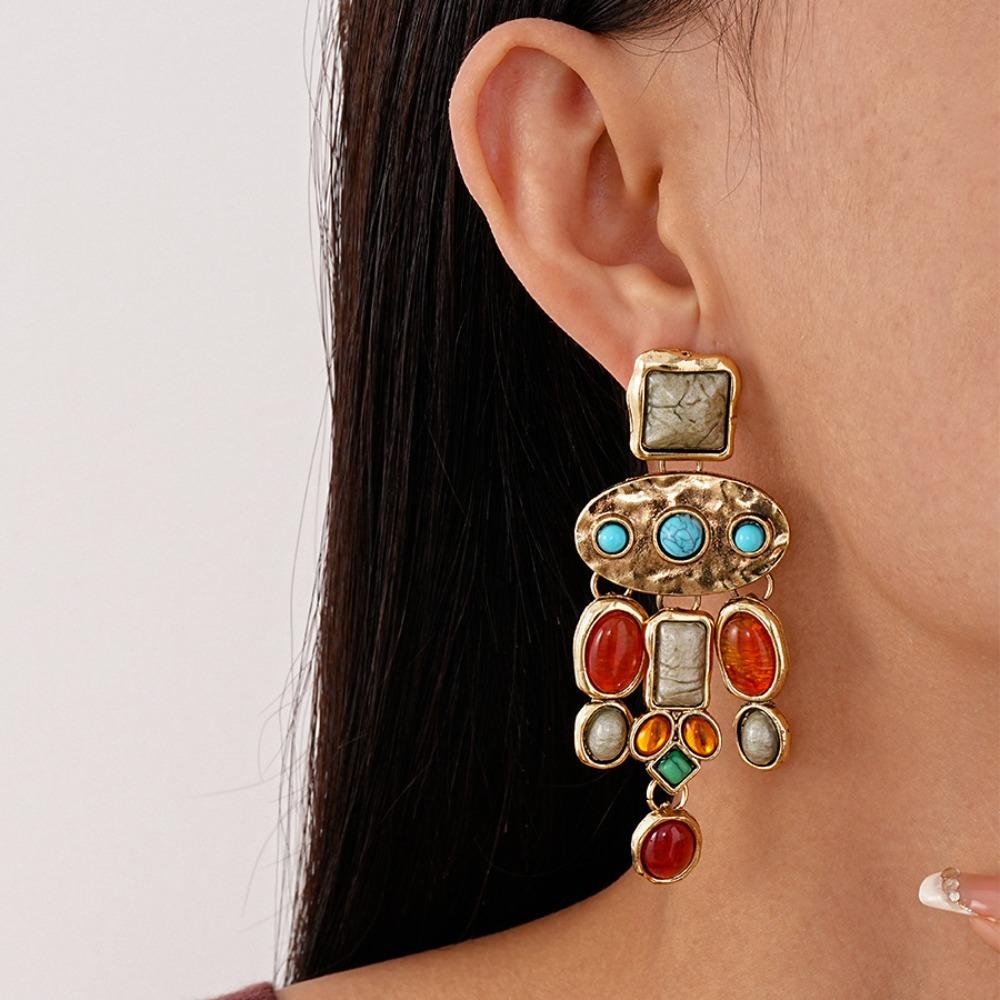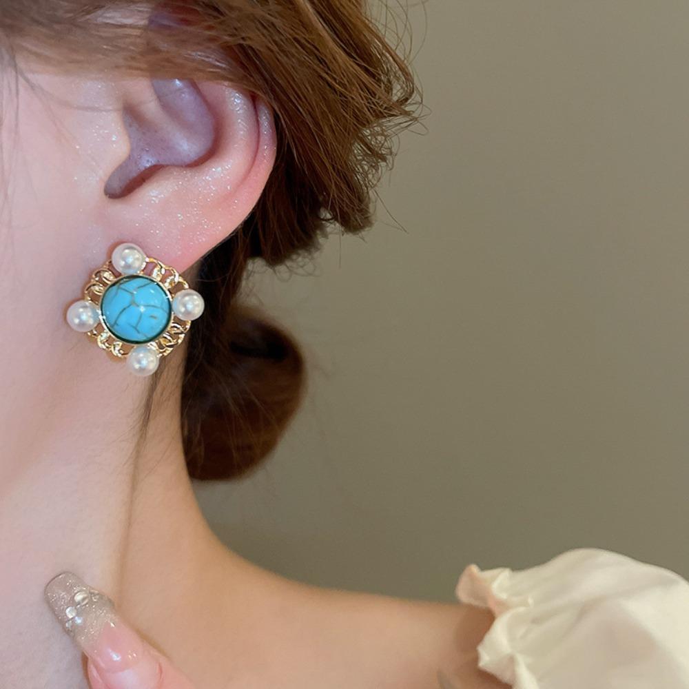 Green Water Drop Bohemian Turquoise Earrings Turquoise Earrings Pendant Pearl Ear Studs Beach