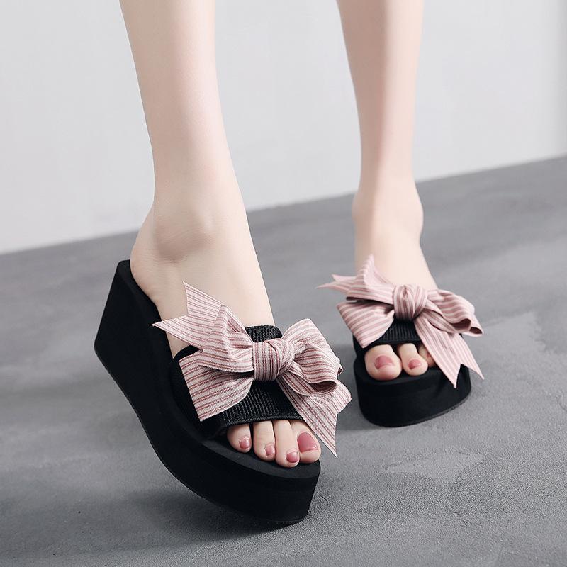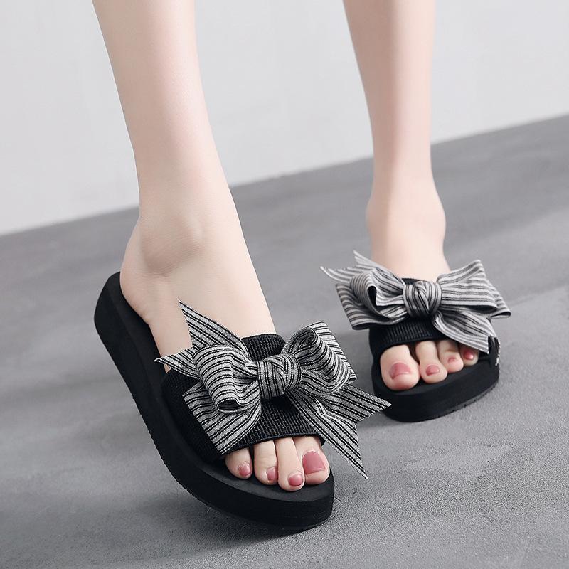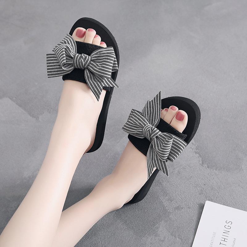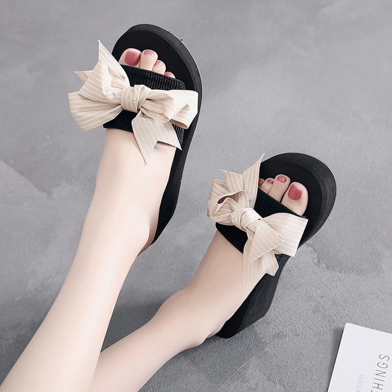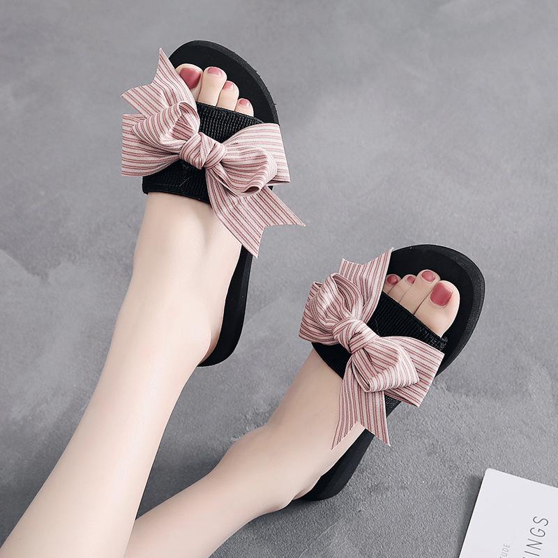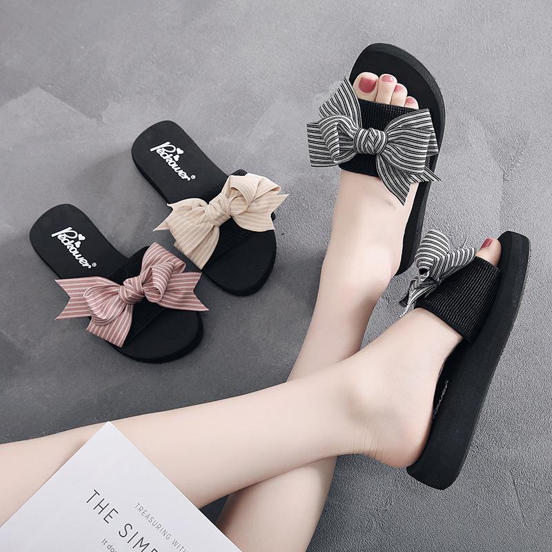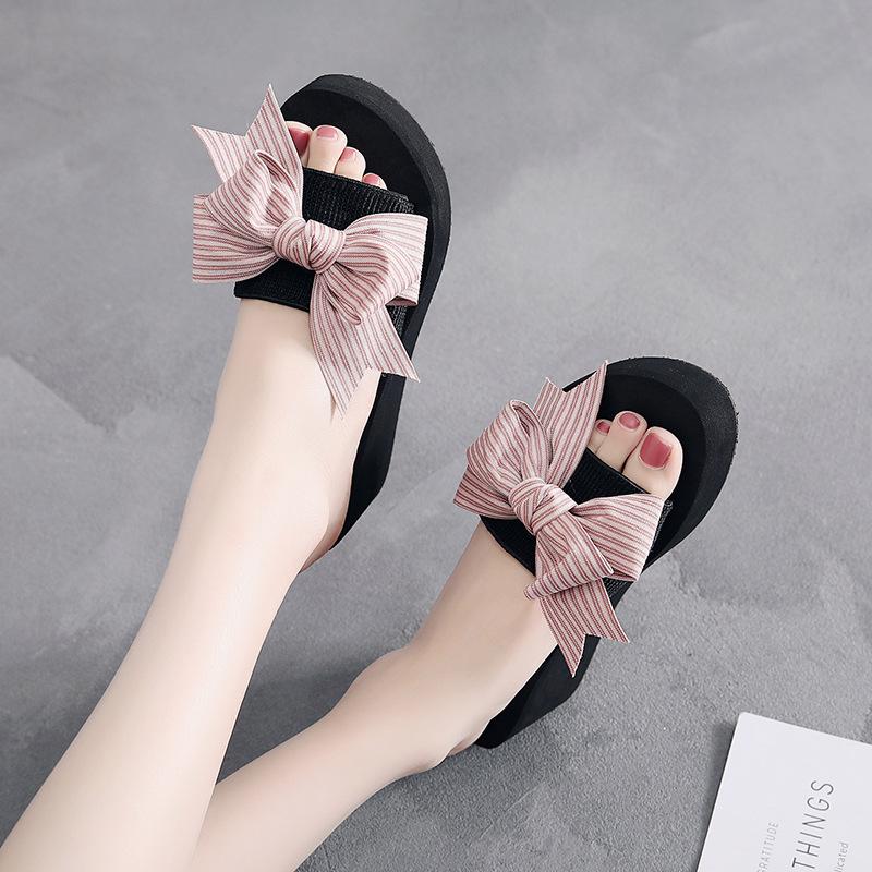 Женские летние модные тапочки ручной работы с бантом, женские нескользящие туфли на танкетке, повседневные дышащие пляжные тапочки