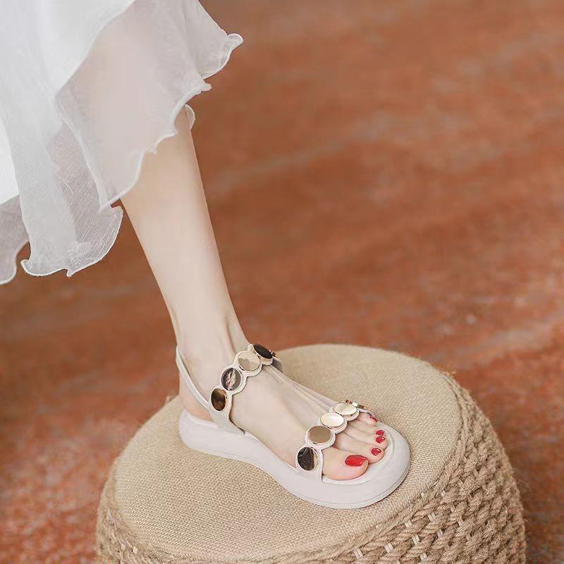 Летние модные женские сандалии 2024 года, новые универсальные сандалии на плоской подошве с одним ремешком в стиле феи, мягкие и удобные римские сандалии на толстой подошве