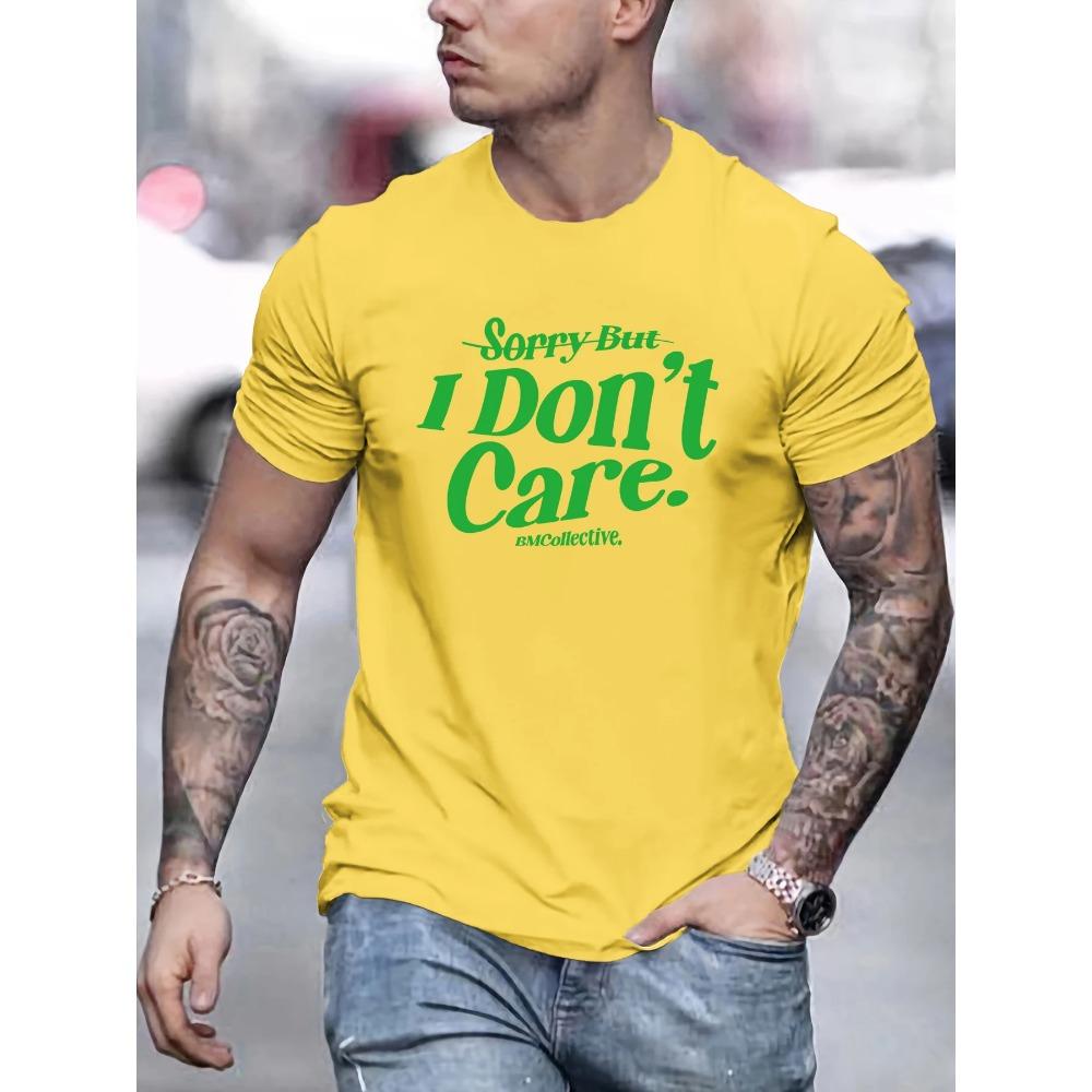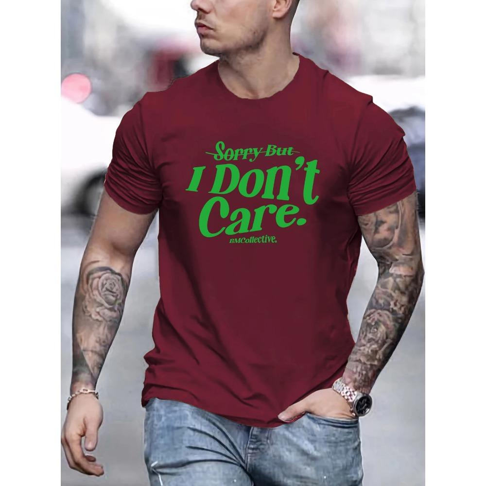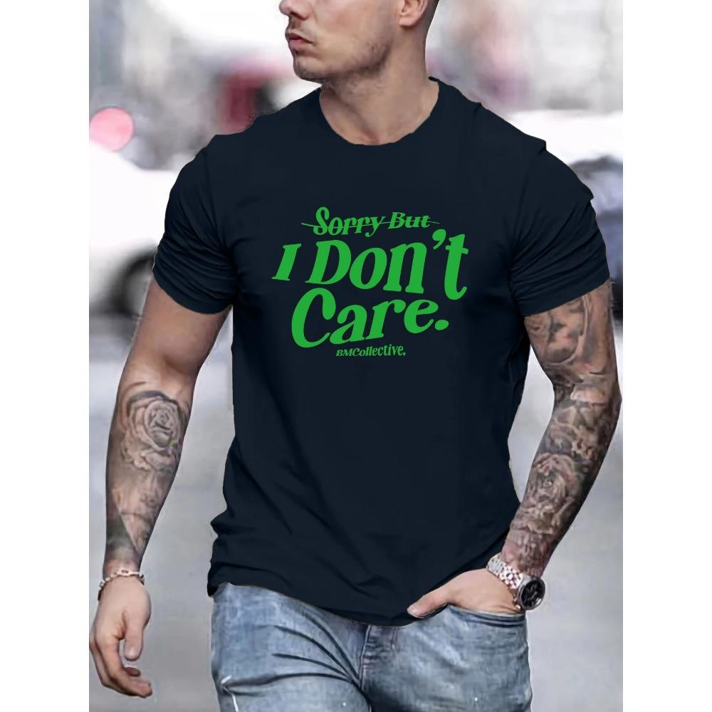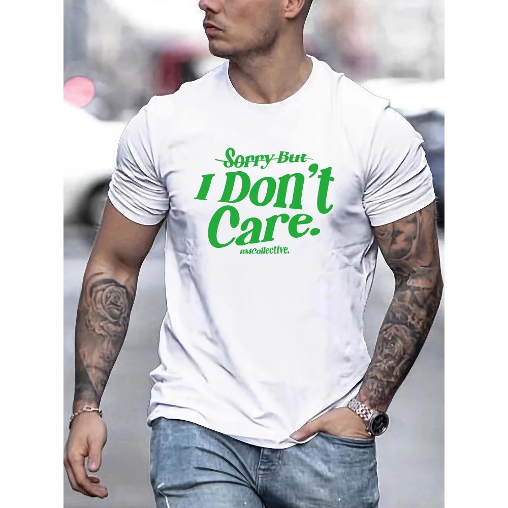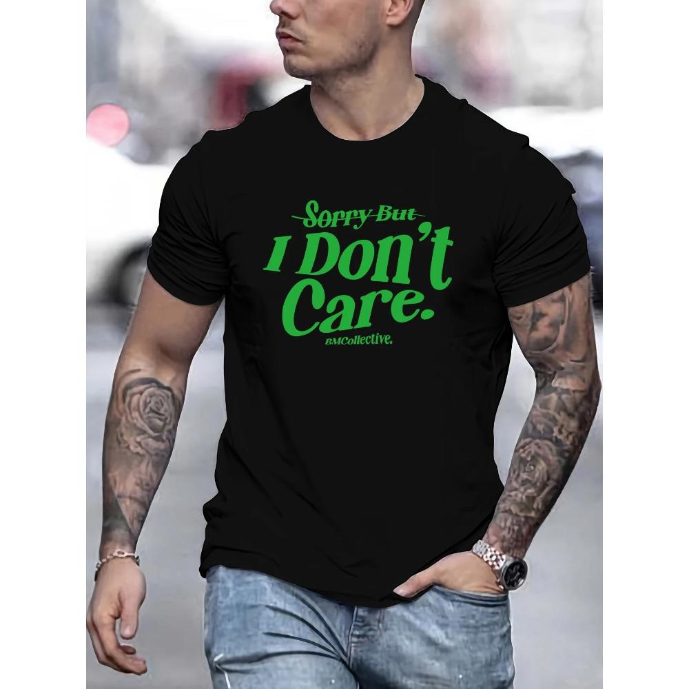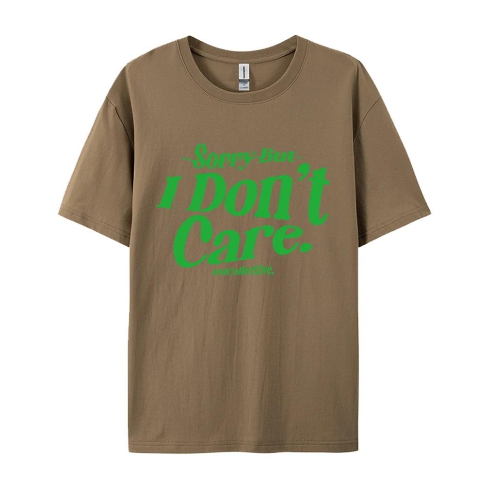 Извините, мне все равно. Зеленая мужская футболка с надписями. Летняя дышащая хлопковая свободная футболка. Универсальная мягкая одежда унисекс с круглым вырезом.