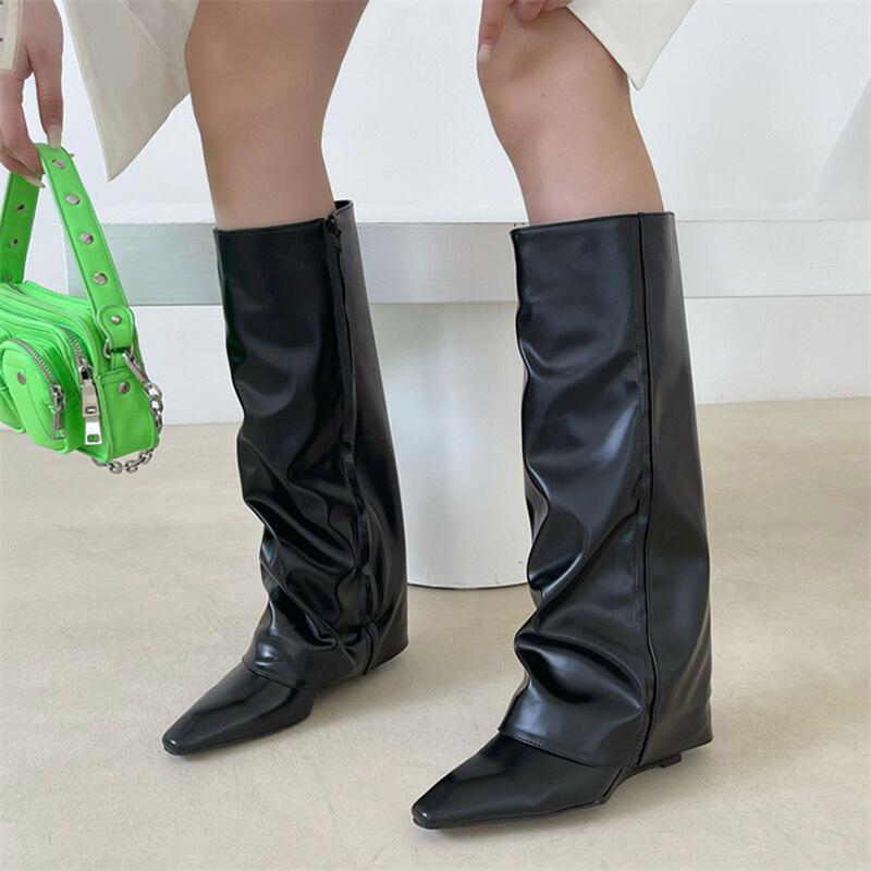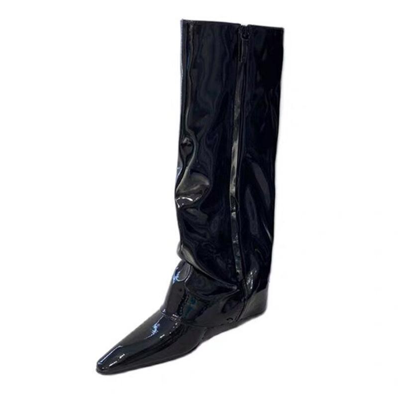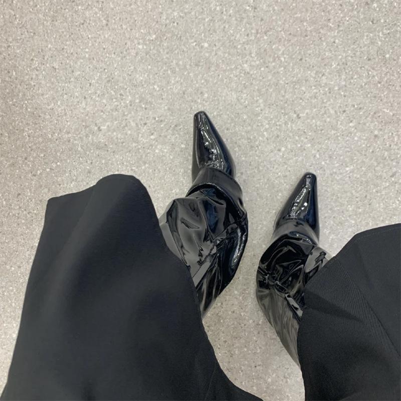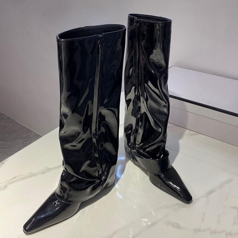 2025 новые детские сапоги до колена, остроносые рыцарские сапоги на высоком каблуке из лакированной кожи, нишевые брюки, сапоги-трубы