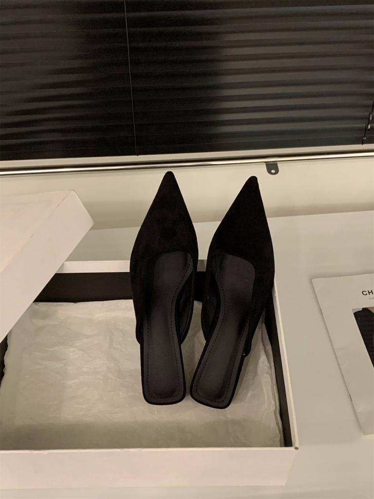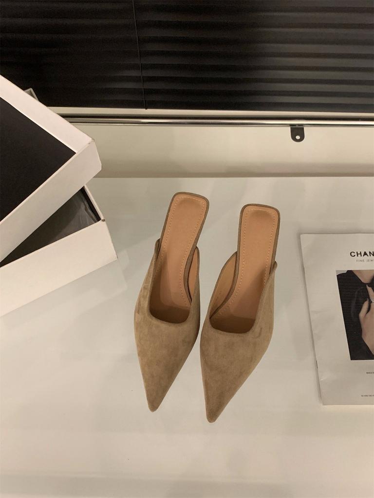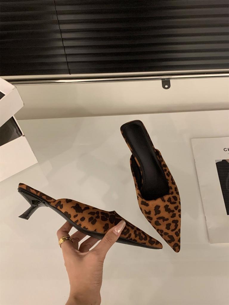 Французский котенок и леопардовый принт на высоком каблуке, полутапочки с сумкой на голову, женская обувь, весна и осень 2024, замшевые полутапочки, одинарные туфли
