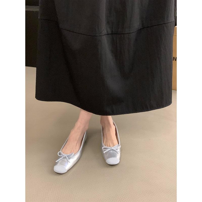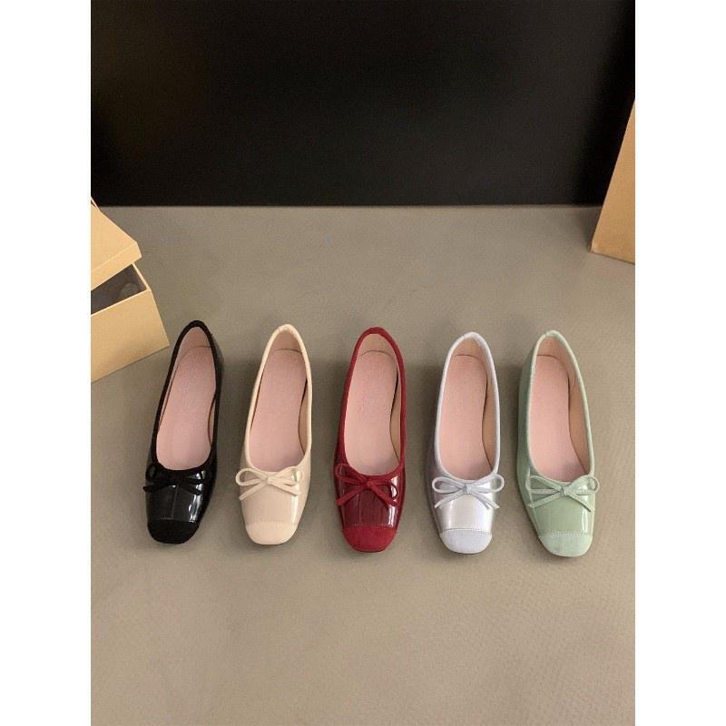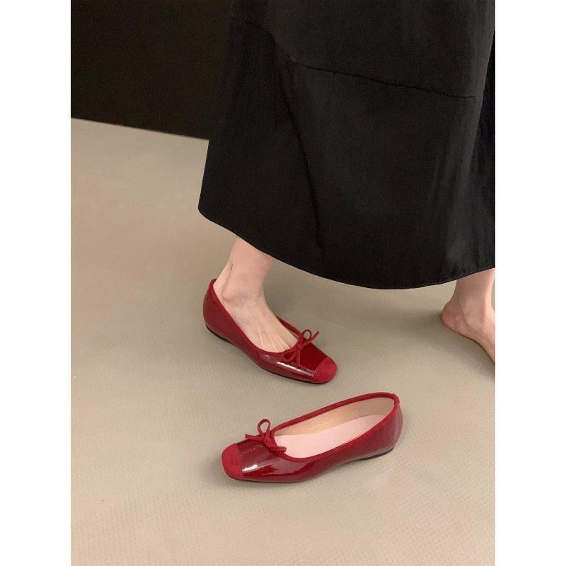 Внутренняя высота увеличивается французские маленькие красные одинарные туфли женские туфли весна и осень 2024 летние банты балетки нежные вечерние туфли