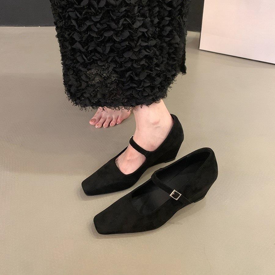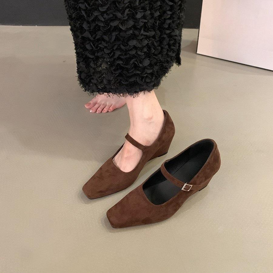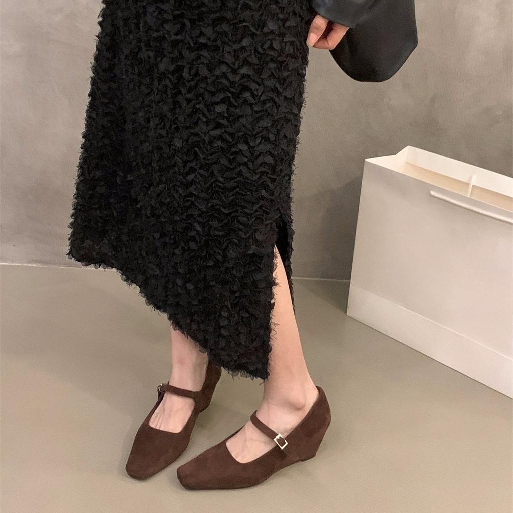 Туфли Мэри Джейн на танкетке в стиле ретро из замши, женская обувь весна и осень 2024, новая летняя юбка, вечерние туфли на высоком каблуке