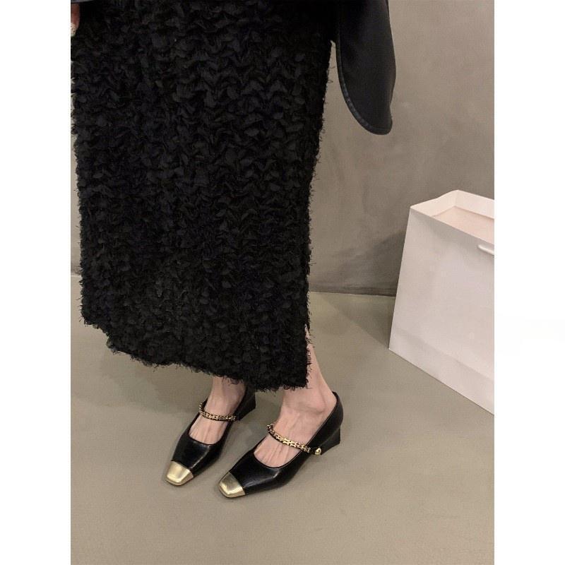 Французские туфли Мэри Джейн на толстом каблуке с квадратным носком, женская обувь 2024, новые весенне-осенние туфли с небольшим изящным темпераментом для вечернего выхода