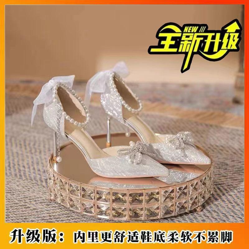 Остроносые свадебные туфли женские 2024 новые основные свадебные туфли свадебные туфли обычно можно носить туфли подружки невесты французские хрустальные высокие каблуки