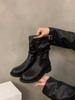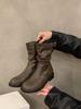 Ретро полусапожки на толстом каблуке, рыцарские сапоги, женская обувь 2024, новые осенне-зимние присборенные короткие сапоги, ботинки Мартин