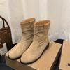 2024 новые корейские ботинки в стиле ins Dongdaemun, нишевые, в стиле ретро, модные женские ботинки, круглый носок, толстый каблук, замшевые маленькие короткие ботинки