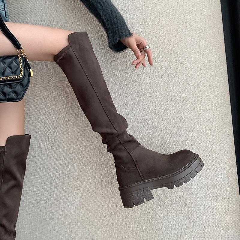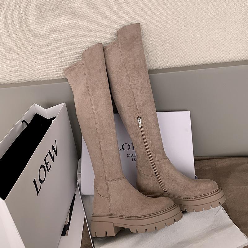 Сапоги выше колена на толстой подошве женские 5050 высокие сапоги на толстом голенище, толстые ММ эластичные и тонкие сапоги темперамент