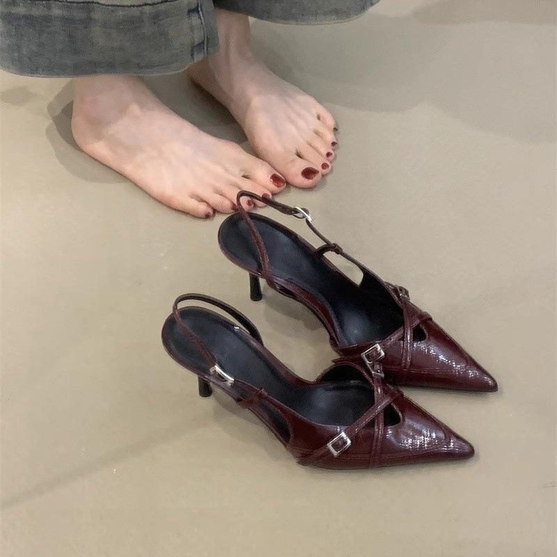 Нишевые крэковые высокие каблуки 2025 года, новый французский темперамент, элегантная мода, фея, заостренная голова, неглубокий рот, босоножки на шпильке