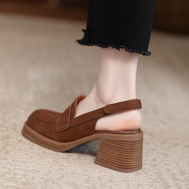 Огромные удобные босоножки с толстой подошвой и круглым носком на толстом каблуке женские 2024 года, новые туфли в стиле ретро с толстыми подошвами и круглым носком сзади, пустые туфли на липучках на высоком каблуке