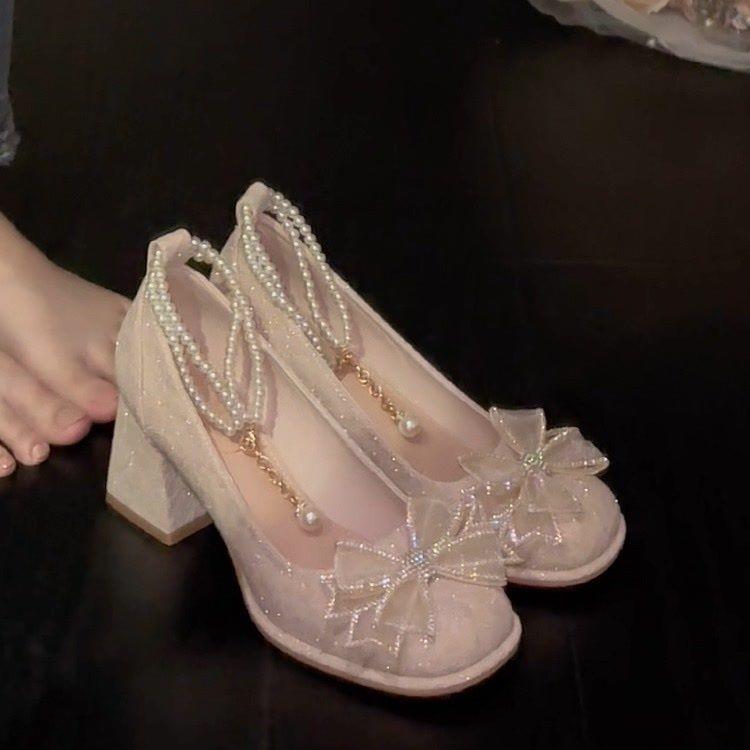 Туфли Мэри Джейн на высоком каблуке женские 2024 года, новые толстые каблуки в стиле феи с юбкой-ципао с изображением лошадиной морды, свадебные туфли для подружек невесты — купить товар онлайн с бесплатной доставкой по всему миру!