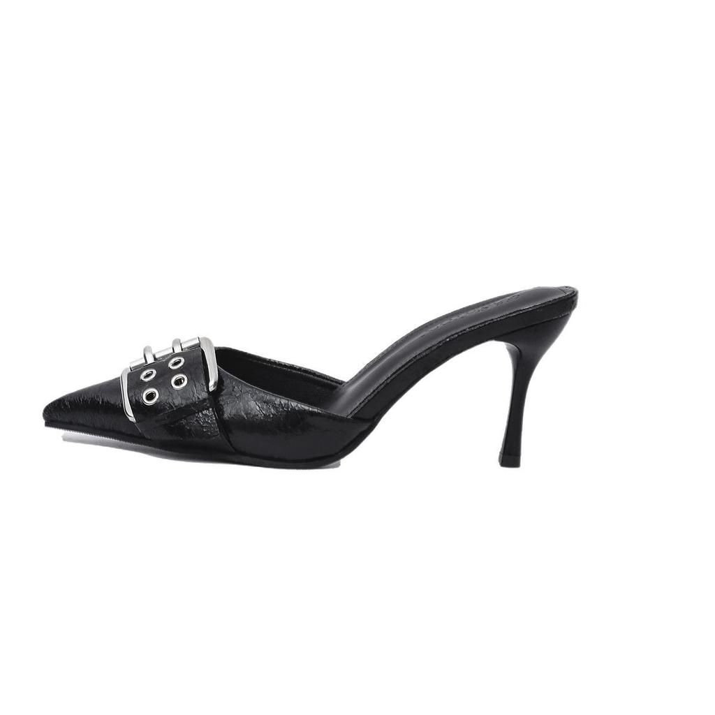 2025 летние новые туфли Muller на высоком каблуке с пряжкой, одинарные туфли с острым носком, тапочки для отпуска, пляжные классные тапочки