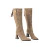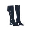 Дизайнерские высокие модные сапоги с металлической пряжкой, осень 2024, новые европейские и американские замшевые сапоги с острым толстым каблуком, тонкие сапоги, длинные сапоги