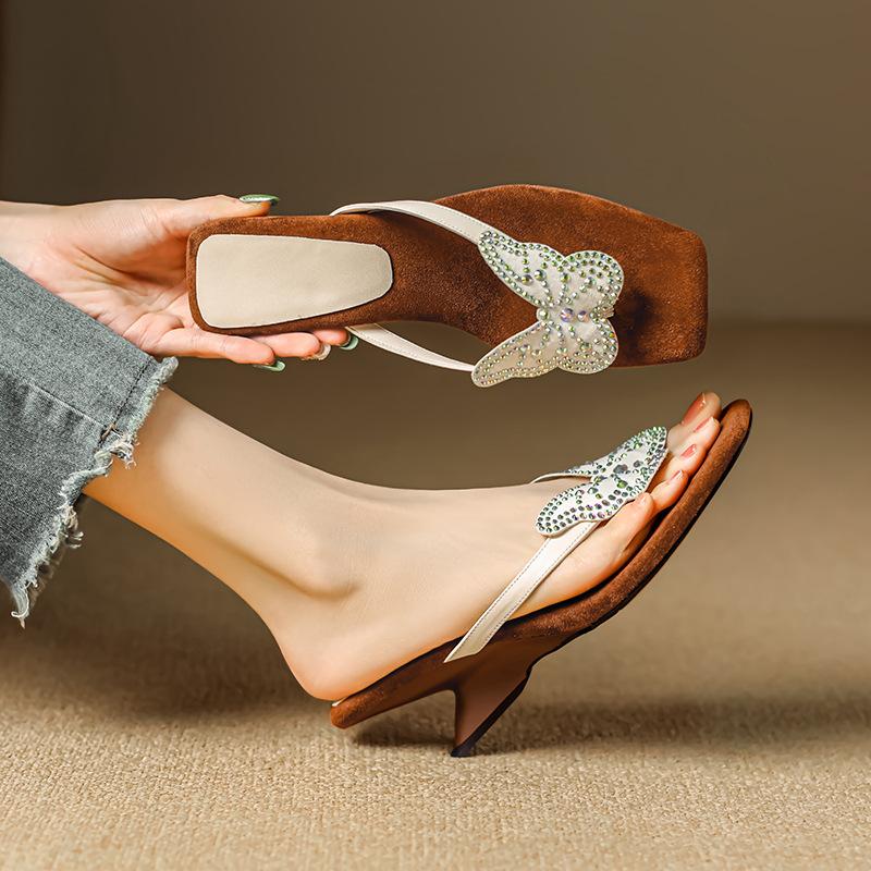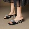 Французские потрясающие босоножки на высоком каблуке, женская летняя одежда, модные тапочки со стразами и бантом, шлепанцы с носками