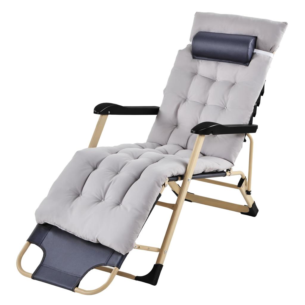 VECELO Уличное кресло-реклайнер, складное кресло для кемпинга с регулируемым углом наклона, кресло-инфинити с подушкой, ширина матраса 92 см, сиденье для одного человека, без сборки