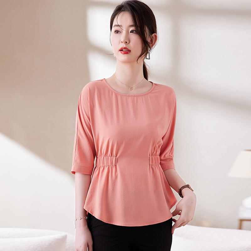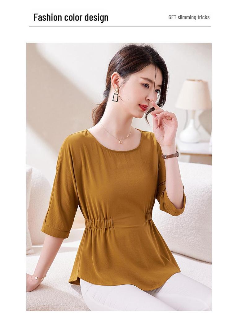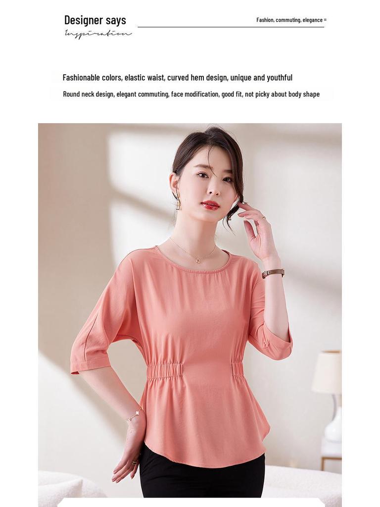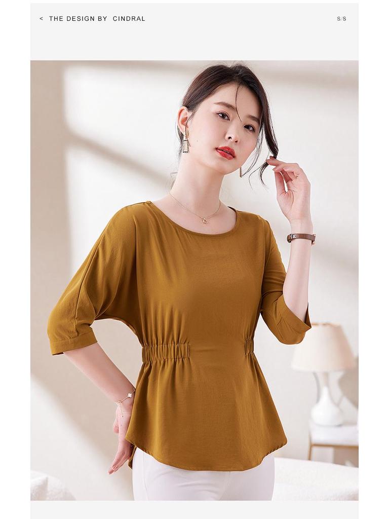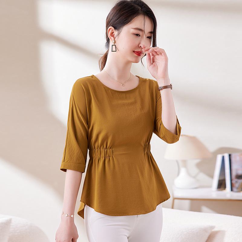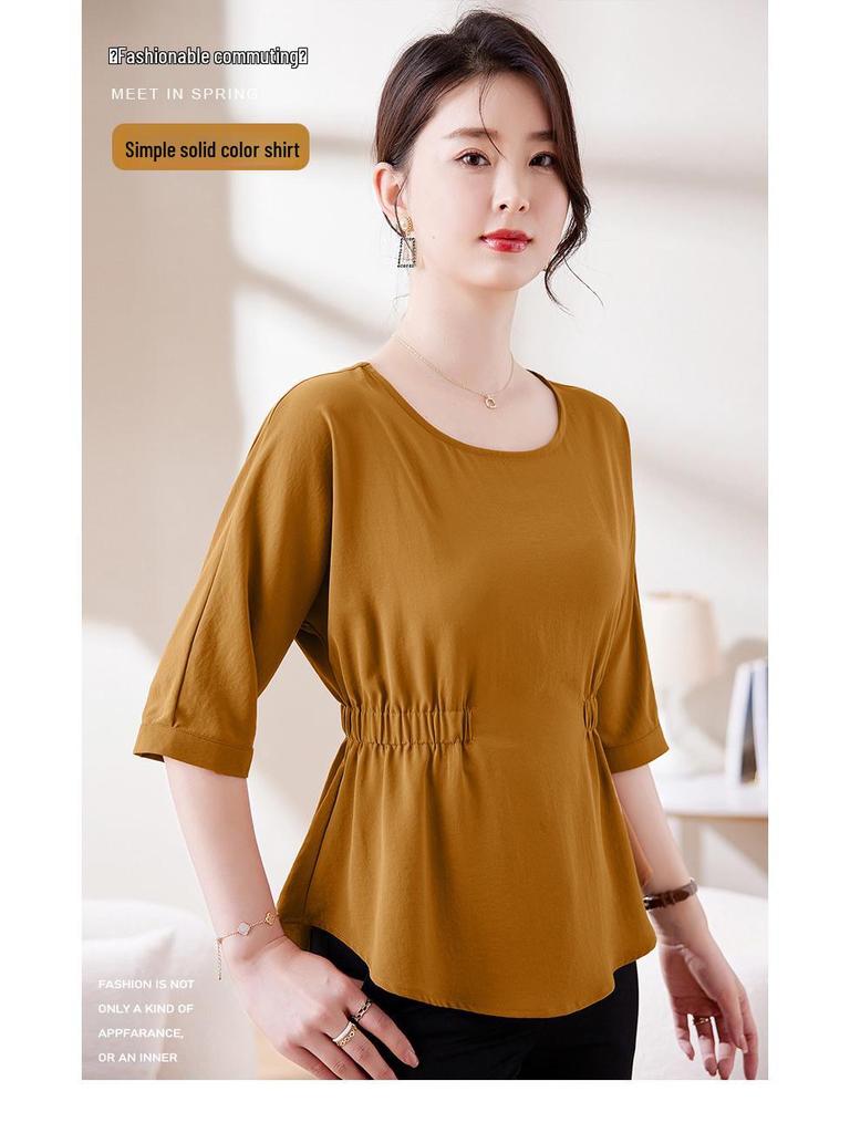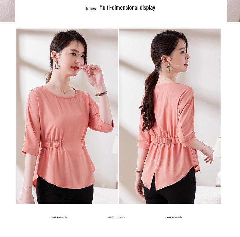 Дополните свой летний гардероб этой стильной облегающей футболкой со складками, которая подчеркнет ваш силуэт.. Изготовленный из высококачественного полиэстера, этот топ сочетает в себе воздухопроницаемость и однотонный рисунок, что делает его универсальным выбором для любого случая.. Круглый вырез и короткие рукава добавляют нотку элегантности, создавая шикарный и непринужденный летний образ.. Эта футболка идеально подойдет для сочетания с вашими любимыми джинсами или юбками. Она обеспечит вам комфорт и моду на протяжении всего сезона.
