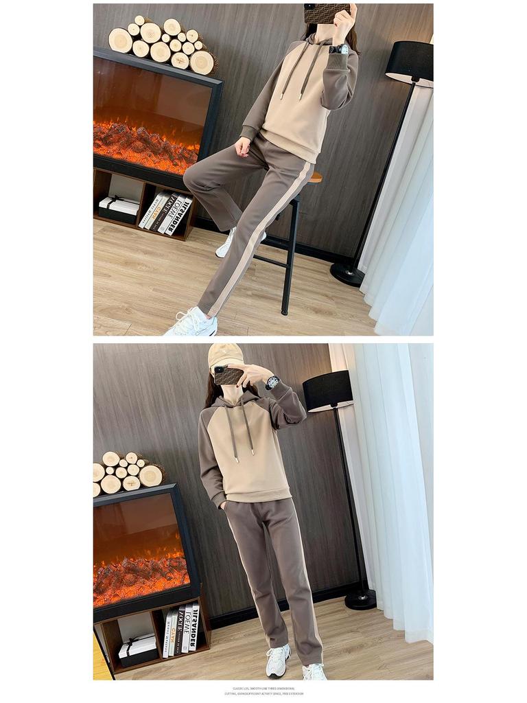 Ощутите сочетание комфорта и стиля в этом спортивном костюме с капюшоном, который идеально подходит как для весны, так и для осени.. Этот комплект из двух предметов с модным рисунком в виде цветных блоков включает в себя топ с длинными рукавами и соответствующие брюки, выполненные из мягкого, дышащего хлопкового материала для максимального комфорта.. Свободный крой обеспечивает свободу движений, а практичные карманы добавляют нотку функциональности.. Этот спортивный наряд идеально подходит для неспешных прогулок или активных приключений и гармонично сочетает в себе элегантность и практичность.
