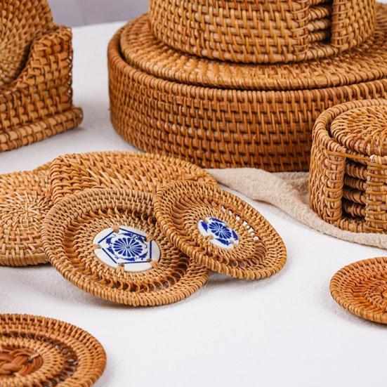 Естественная элегантность: Украсьте свой обеденный стол этими ротанговыми подставками, которые отличаются простым, но элегантным дизайном и изготовлены из натуральных материалов, что придает им нотку органического очарования.