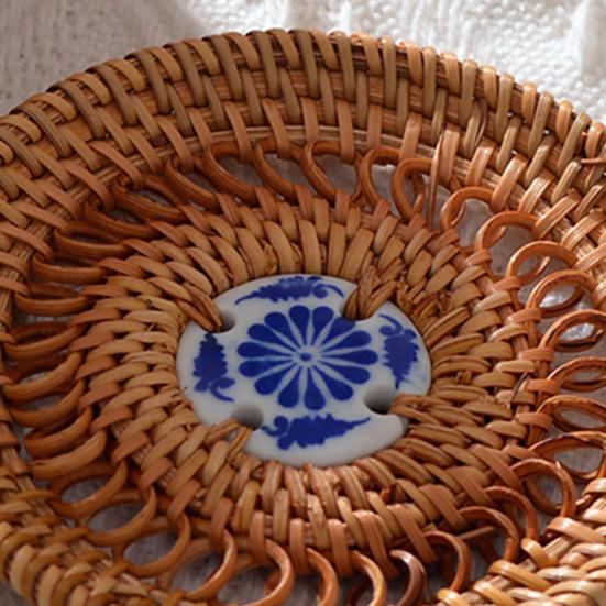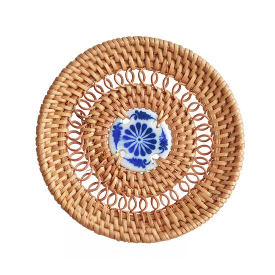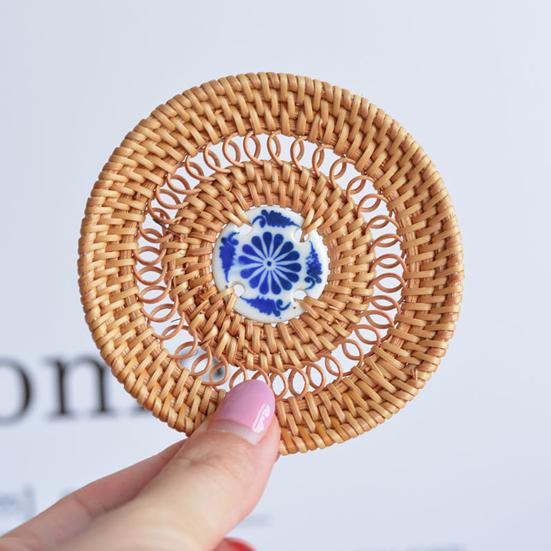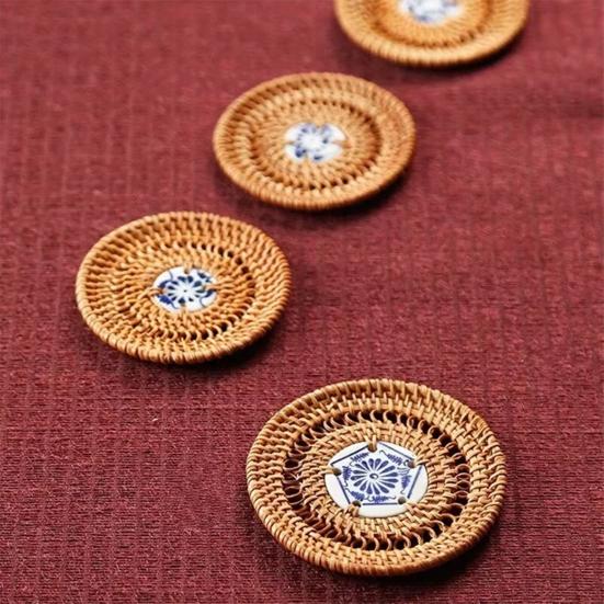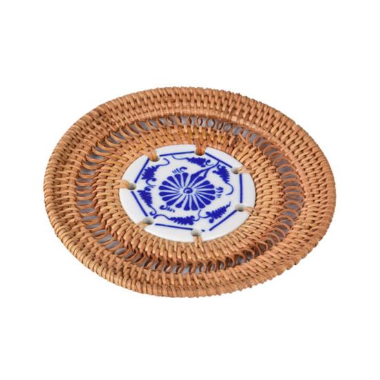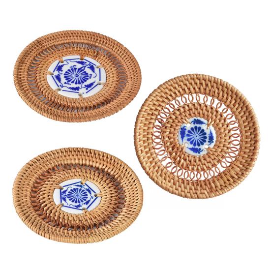 Украсьте свой обеденный стол этими стильными и экологичными подставками из ротанга.. Изготовленные из натуральных материалов, эти подставки не только добавят нотку природы в ваш интерьер, но и обеспечат прекрасную изоляцию, защищая ваши столешницы от теплового повреждения.. Уникальная форма диска имеет шикарный керамический центр, что делает их стильным дополнением к любому интерьеру..