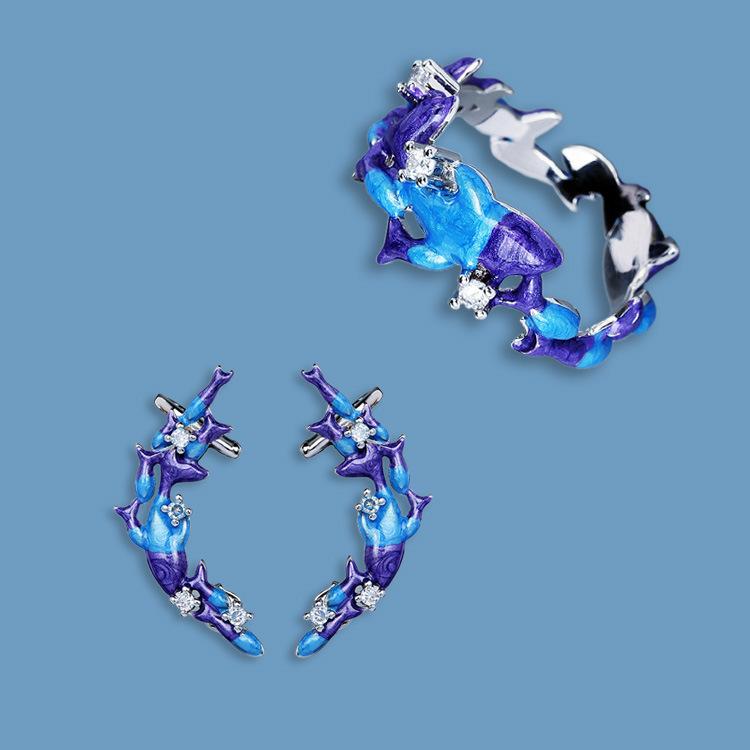 Summers New Animal Dolphin Earrings Ring Set Enamel Gradient Irregular Casual Cartoon Cute Mix — купить товар онлайн с бесплатной доставкой по всему миру!