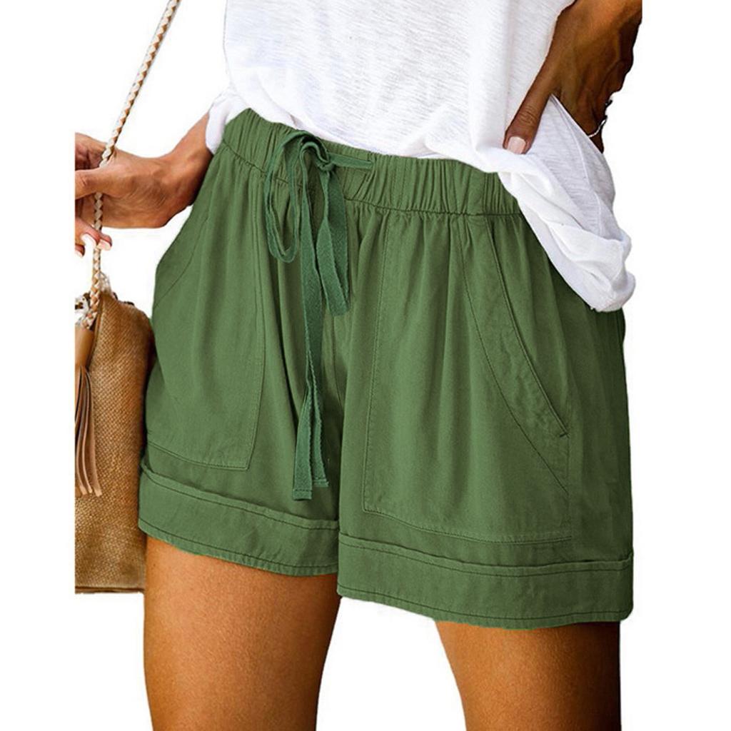 Повседневные шорты для женщин 2025 Лето Большие карманы Затягивающийся шнурок Эластичные Высокая талия Короткие брюки Однотонные шнуровка Свободные широкие брюки
