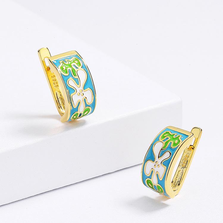 Новый комплект украшений из эмали Этнический цветок Элегантный ретро садовый цветок Кольцо Серьги