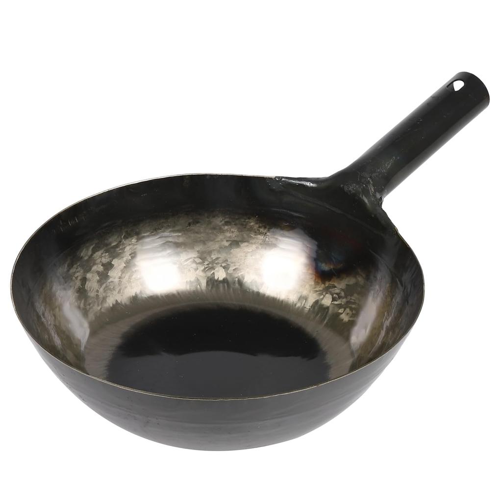 Изготовленный мастерами вок долговечен и обладает хорошей теплопроводностью, а неровная поверхность позволяет ему лучше впитывать масло и не дает ему пригорать.. Мы изготовили на заказ модель с плоским дном, которую легко использовать дома.