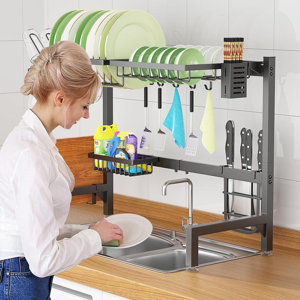 2. Вместительная сушилка, которую можно расширять и сужать по ширине в соответствии с размером кухонной мойки.. Он полезен и гигиеничен, поскольку обладает противоплесневыми и антибактериальными свойствами.