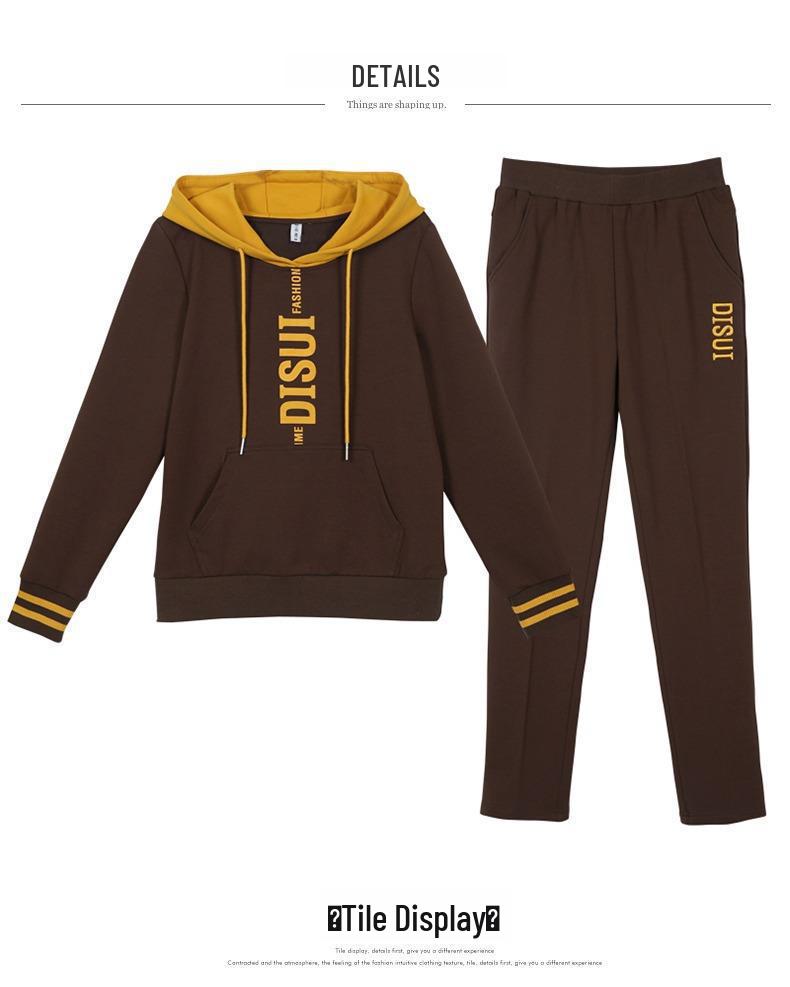 Ощутите комфорт и стиль с этим женским осенним комплектом из толстовки с капюшоном и брюк с контрастными буквами. Этот повседневный комплект, рассчитанный на свободный крой и доступный в больших размерах, идеально подходит для прохладных месяцев.. Изделие изготовлено из прочного и приятного на ощупь полиэстера и украшено уникальным печатным рисунком, который придает ему модный вид.. Этот комплект идеально подходит для спокойных прогулок или уютных дней дома, он гармонично сочетает в себе моду и комфорт.