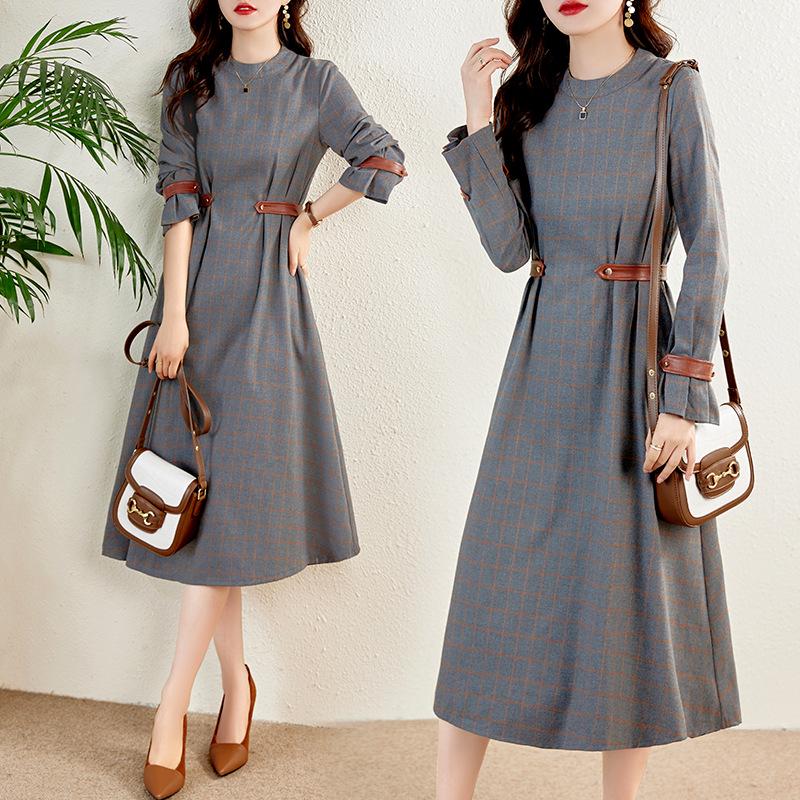 Женское клетчатое платье миди в корейском стиле, осень 2022 г. — стройнит и элегантно — купить товар онлайн с бесплатной доставкой по всему миру!