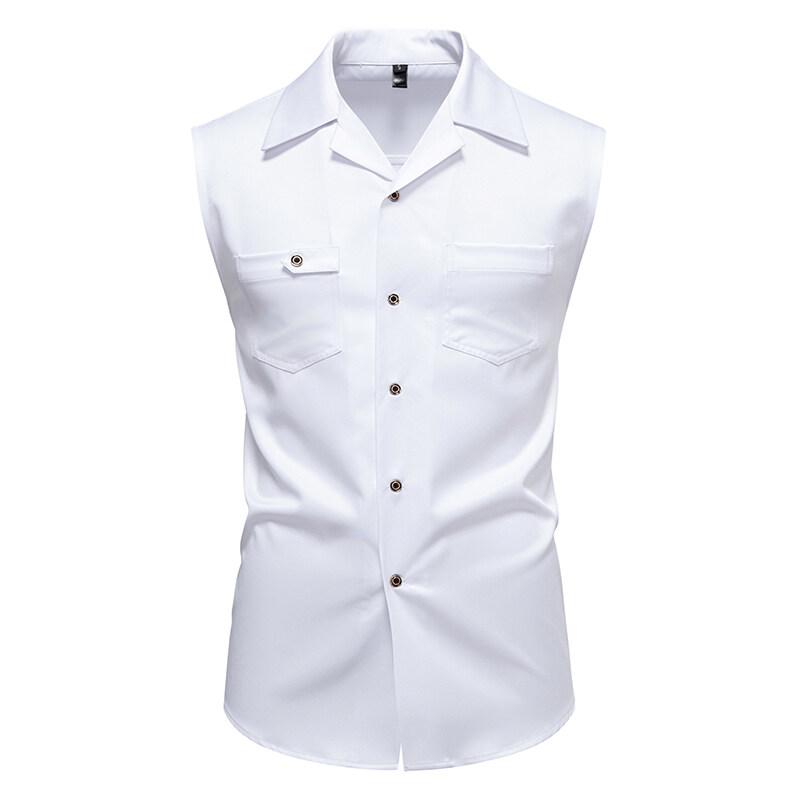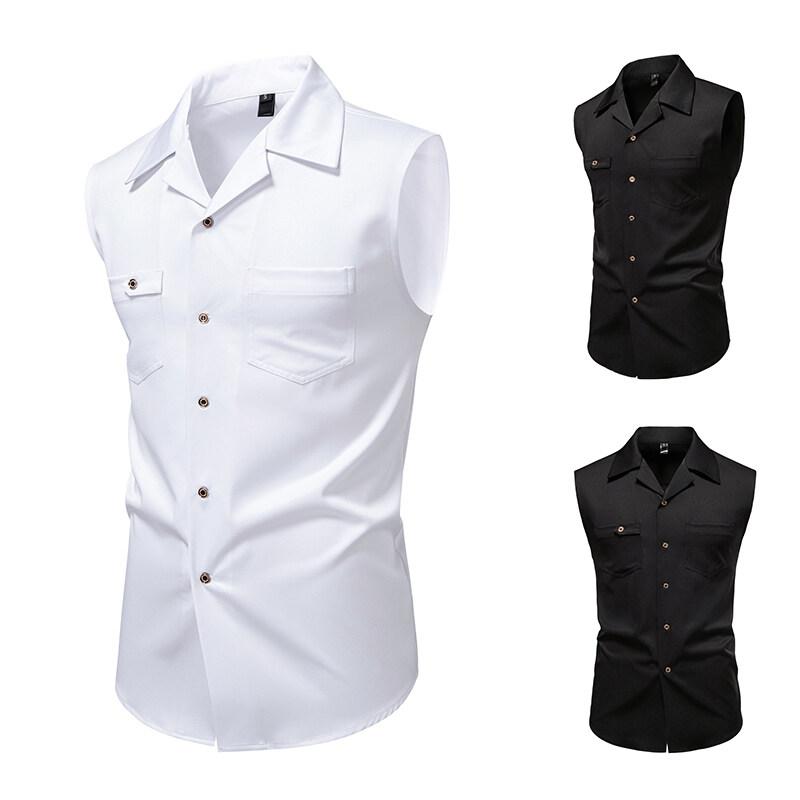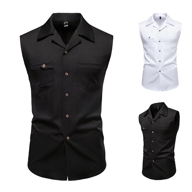 Мужские жилеты, топы, летние мужские жилеты с пряжками 2025 года, модные повседневные рубашки без рукавов, однобортные свободные жилеты для мужчин