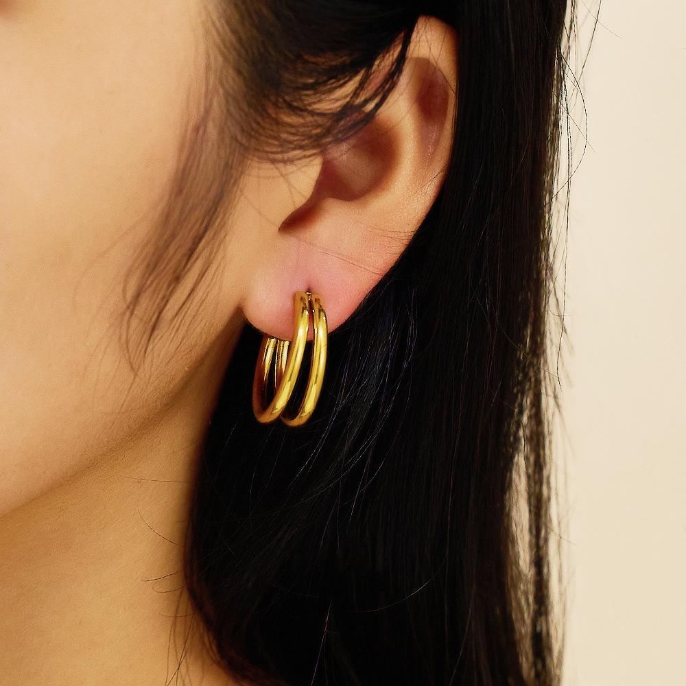 Золотые серьги для женщин, простые двухслойные универсальные серьги в форме буквы С